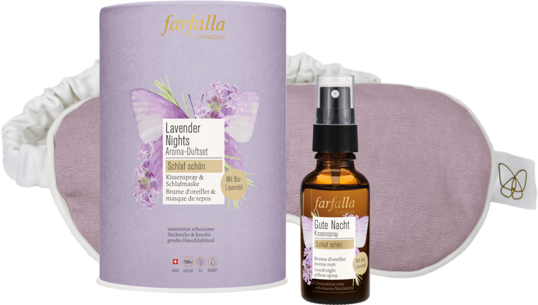 Indulge in a calming bedtime routine that gently guides you to dreamland. The set includes everything you need in the evening to unwind and forget about a stressful day. The pillow mist with a delicate lavender fragrance transforms your pillow into a little wellness oasis. The matching sleep mask made from recycled cotton and filled with real lavender flowers rounds off your new routine perfectly.