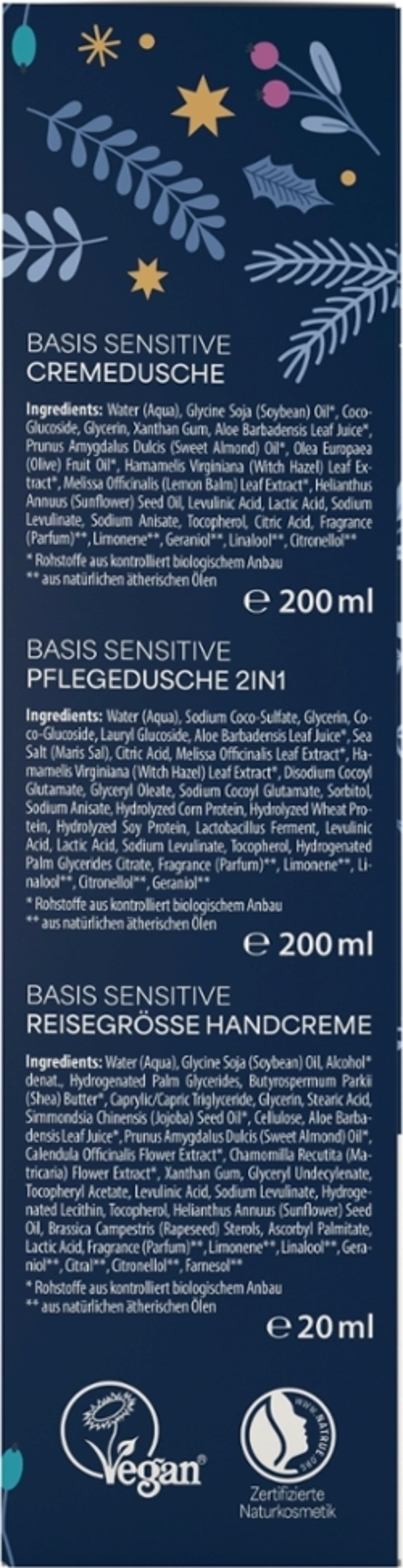 The popular and gentle basis sensitiv care set is the ideal gift idea, stylishly packaged in an elegant gift box. The Winter Care Set consists of a cream body wash, a 2-in-1 body wash and a small hand cream. For supple and nourished skin in winter.