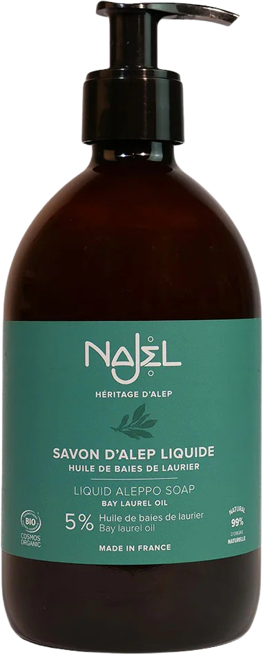 Discover the genuine Aleppo soap in liquid form, which is also suitable for dry, sensitive and irritated skin. It is an authentic product that is famous all over the world. Najel produces it exclusively with organic olive oil and organic laurel berry oil to deliver a natural product of outstanding quality. Discover all the craftsmanship of the Syrian master soap makers with this Aleppo soap.