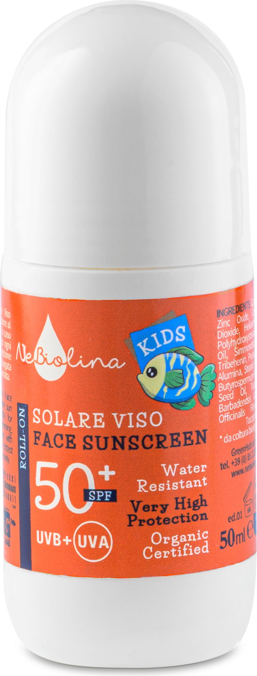 Protect children's delicate skin with the NeBiolina Solare 50+ roll-on. Its certified organic formula offers high UVB and UVA protection and is waterproof.
