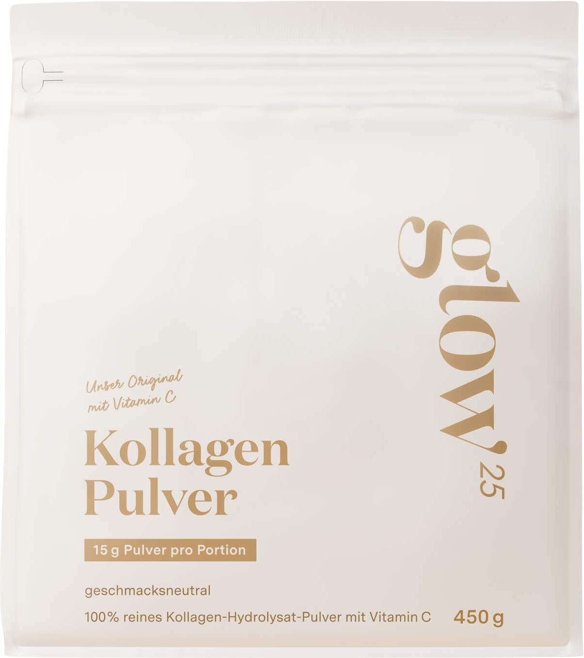 Glow25 Collagen Powder is a bioactive collagen hydrolysate in powder form that can be easily stirred into hot and cold drinks as well as food. The powder has a neutral taste and dissolves quickly and without lumps thanks to a special agglomeration process. It contains no artificial additives, preservatives or fillers.