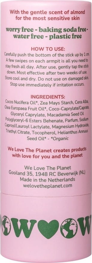We Love The Planet Soft Almond Sensitive Deodorant, Deodorant Stick (40g)