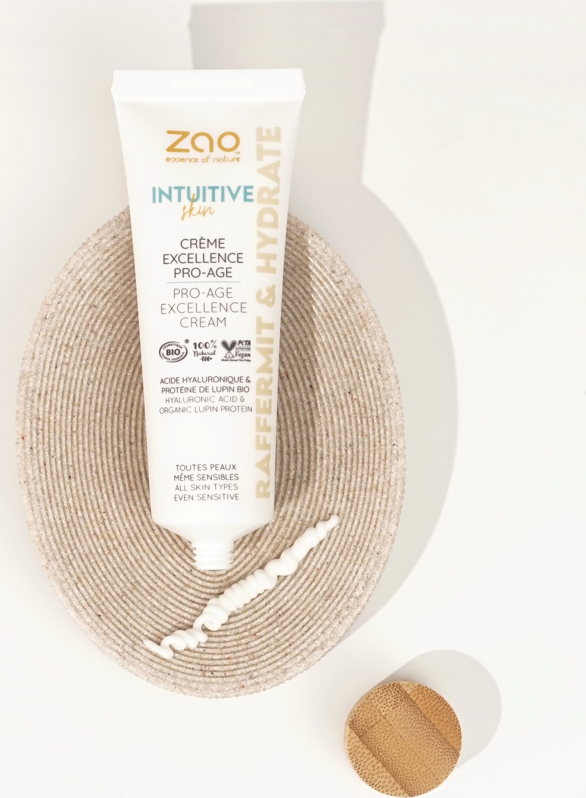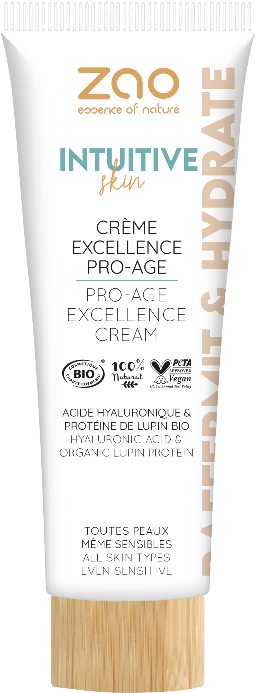 This cream provides the skin with long-lasting and intensive moisture. It contains plant-based hyaluronic acid for deep moisturising and plumping properties as well as organic lupin protein, which is known for its firming and regenerating properties. The creamy texture, enriched with organic plant oils and butters, intensively moisturises the skin without weighing it down. Day after day, facial features are smoothed and the skin regains its elasticity, radiance and natural suppleness.