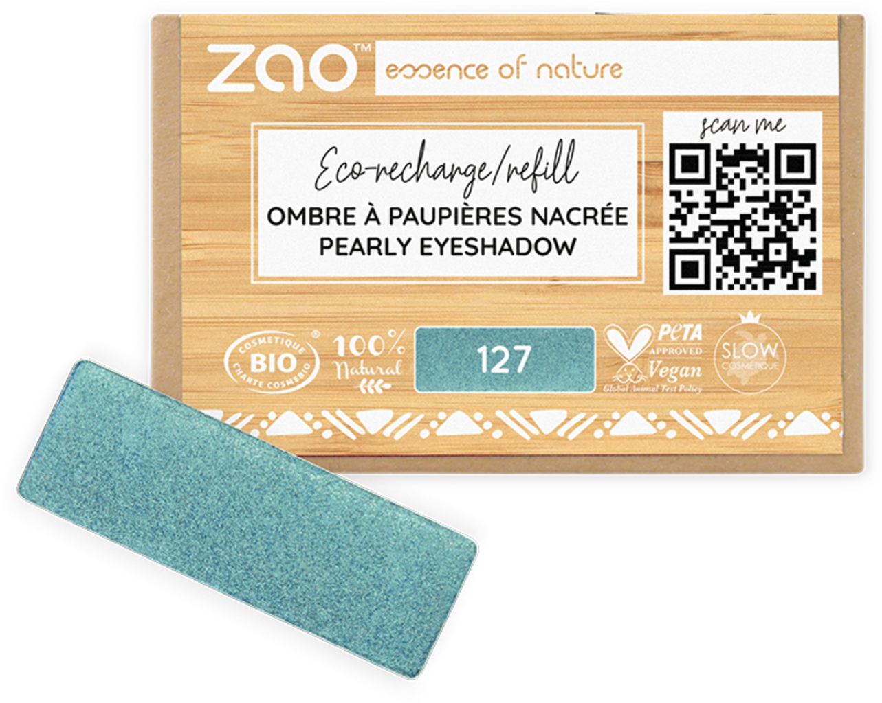 Zao Refill Rectangle Eye Shadow, 127 Pearly Peacock Blue (1,30 g)